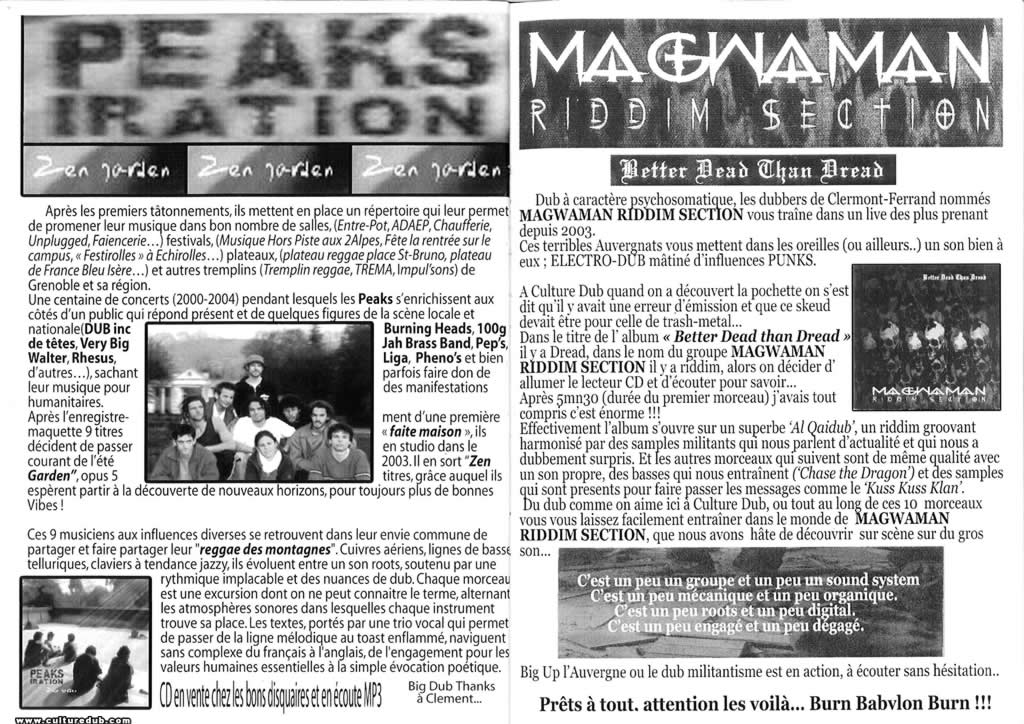 - pages 18-19 Peaks Iration « Zen Garden » – Magwaman Riddim Section « Better Dead Than Dread »