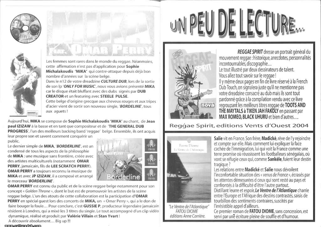- page 10-11 Mika feat Omar Perry « Borderline » – Culture Dub Séléction Livres Reggae
