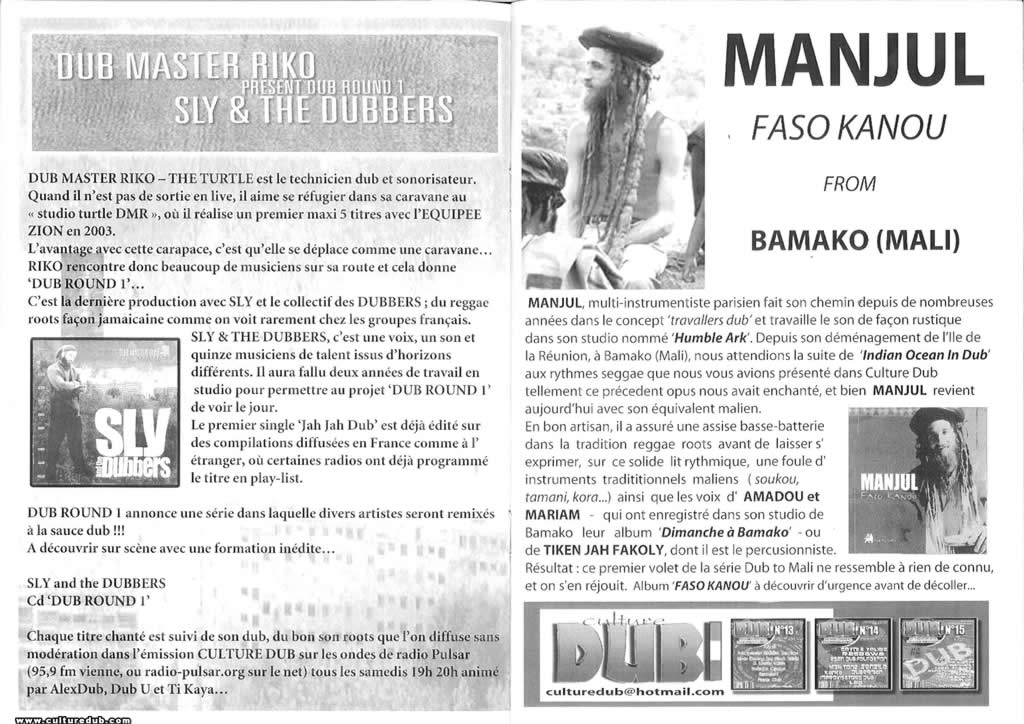 - pages 12-13 Dub Master Riko présent « Dub Around 1 » par sly & The Dubbers – Manjul « Faso Kanou »
