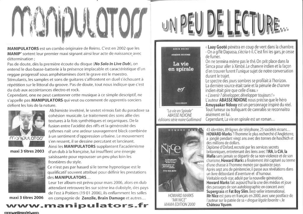 - pages 22-23 Manipulators « Manipulators » – Culture Dub Séléction Livre « Stupéfiants »