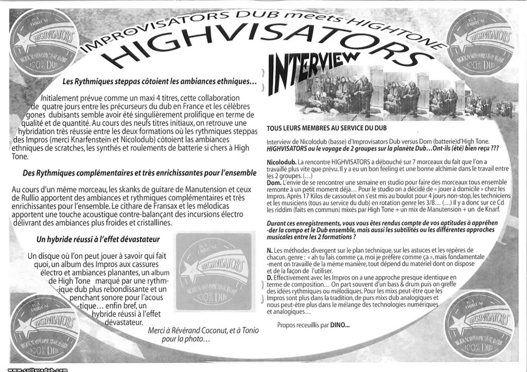- pages 14-15 Improvisators Dub metts Hightone « Highvisators » – Interview Dino (High Tone)