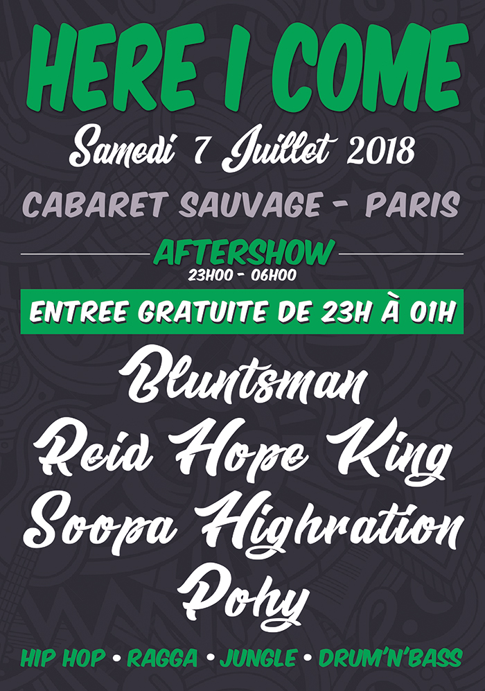 Sortez donc vos agendas afin de réserver votre nuit du samedi 7 juillet pour la prochaine édition qui aura lieu au Cabaret Sauvage à Paris. L’aftershow commencera à 23h et se poursuivra jusqu’à 6 heures du matin. Les entrées seront gratuites de 23h à 1h du matin. Les basses augmenteront en intensité puisque vous pourrez vibrer au son de Reid Hope King à base de bass music, trap et dubstep ainsi qu’à celui de Soopa Highration, l’expert de la ragga bass. Pohyet Bluntsman seront également de la partie pour des set ragga jungle et drumnbass.
