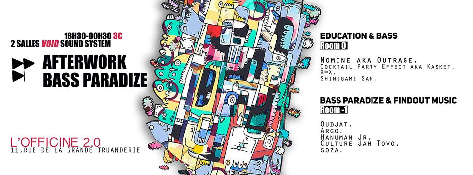 En collaboration avec Findout Music, Bass Paradize importe pour la première fois à Paris le concept « Education & Bass » de Nomine. Habitué à intervenir au sein d’Universités et de SAE Institute, Nomine a pour intention d’offrir une 1ère partie de 1h30 consacrée à des Workshops pour partager ses connaissances sur les technologies et la production audio, suivie d’une 2ème partie incluant des Lives et DJ sets. Il viendra accompagné par 2 berlinois qu’il a fait signer sur son label Nomine Sound, à savoir Cocktail Party Effect (aussi connu sous l’alias Kasket) qui fera un focus sur l’usage du Modulaire 101, et X=X qui s’étendra sur l’évolution de l’Electronic Dance Music (EDM).