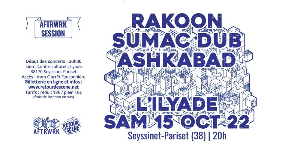 Un machiniste féru de rythmes endiablés et un chanteur aux mélodies aussi furieuses que soignées. Forts d’une certaine maturité musicale, de nombreux concerts à travers l’Europe et après avoir partagé la scène avec les grands noms de la scène dub, les deux musiciens ont su marquer leur style et le faire évoluer. C’est en live que la musique d’Ashkabad prend toute son ampleur, leur énergie débordante fera bondir les plus réfractaires.