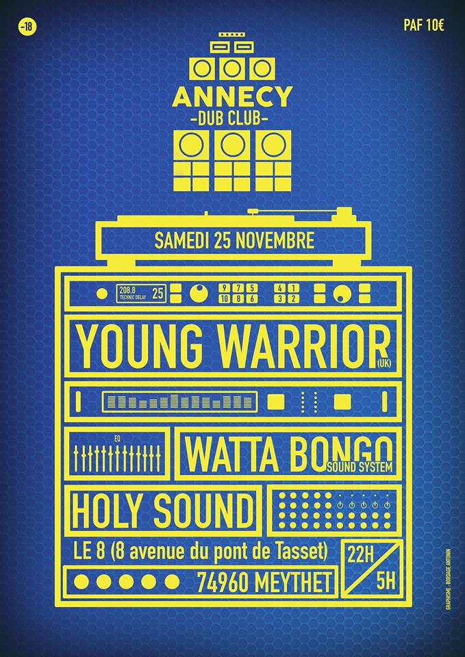 Organisée par l’association High Culture en coordination avec le Holy Sound Crew et le Watta Bongo Sound system, les soirées Annecy Dub Club vous donnent rendez vous tout les 2 mois pour partager la culture sound system reggae dub en compagnie d’invités de france et d’ailleurs. La sonorisation des soirées sera donc assurée en alternance entre le Holy Sound system et le Watta Bongo Sound system, deux sound issus du bassin Annecien.