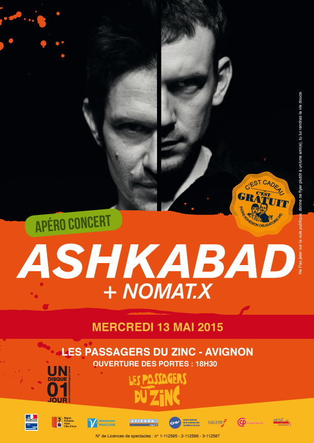 Apéro concert ce mercredi 13 Mai aux Passagers du Zinc (Avignon/84) avec au programme l’explosive live dub de Ashkabad et le steppa de Nomatx !
