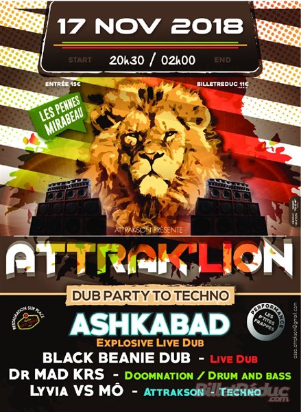 Ashkabad est né en 2010 d’une amitié de longue date entre un machiniste féru de rythmes endiablés et un chanteur aux mélodies aussi furieuses que soignées. Le duo Avignonnais crée la formation avec une envie commune d’un Dub sans barrières, puisant leurs inspirations dans le roots JamaÏcains, le Dub Français et Anglais, la mouvance Bass Music actuelle ou encore la culture Sound System. Forts d’une certaine maturité musicale, de nombreux concerts à travers l’Europe et après avoir partagé la scène avec les grands noms de la scène Dub (Panda, Kanka Aba Shanti I, ODG, Dub Inc., Mahom, Brain Damage…) les deux musiciens ont su marquer leur style et le faire évoluer. Leurs deux premiers EP affichent leur ancrage dans l’ Electro-dub et leur recherche d’un son toujours plus puissant et ouvert à l’expérimentation. Leurs collaborations avec Mahom, Odatteee ou encore After All sound system révèlent cette constante ouverture au métissage qui les amènera à sortir en 2016 leur premier album « International Skankers ». Un opus en forme de carnet de voyage, où styles et cultures musicales se mélangent. Un Dub qui se teinte de Trap, de Cumbia, de Balkan, jongle avec les ambiances toujours portées par une basse massive. C’est sur scène que leur son prend toute son ampleur, avec une énergie sans limite qui en laissera plus d’un sur les genoux.