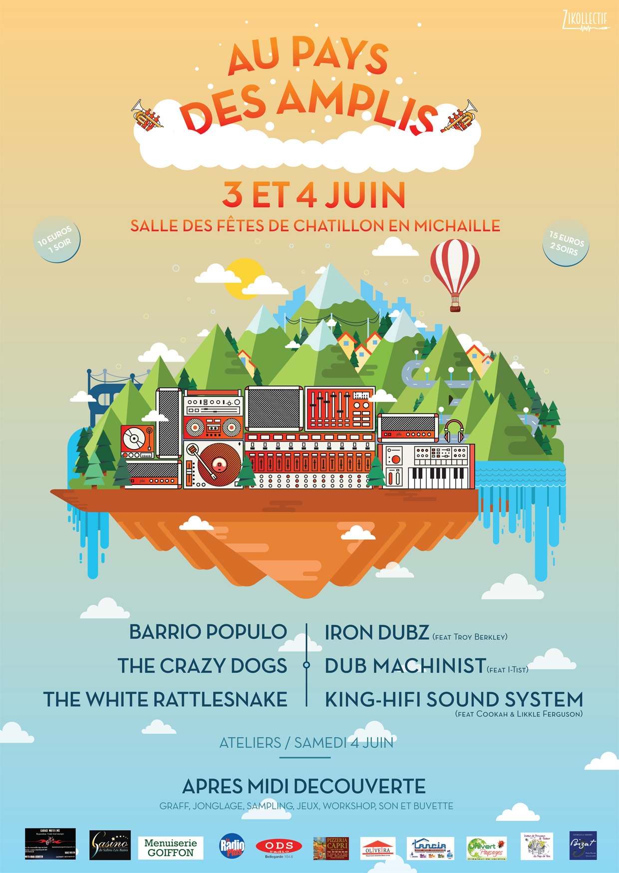 L’après-midi du samedi sera lui un après-midi de découvertes avec: initiation jonglage, graff’, jeux en boix, atelier sur les techniques du sample et workshop sur la culture sound system avec les membres d’Organic Sound (Sur réservation à zikollectif@gmail.com).