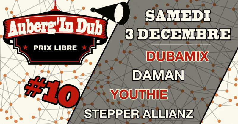 Que d’incroyables moments déjà passés avec ces sessions dub et voilà déjà la 10ème ! Alors pour fêter ça, nous avons voulu marquer le coup et inviter des artistes qui nous touchent par leur approches uniques, de par leur aspect militant ou éclectique. On vous attend donc avec une grande impatience pour skanker le sourire aux lèvres et le poing en l’air !