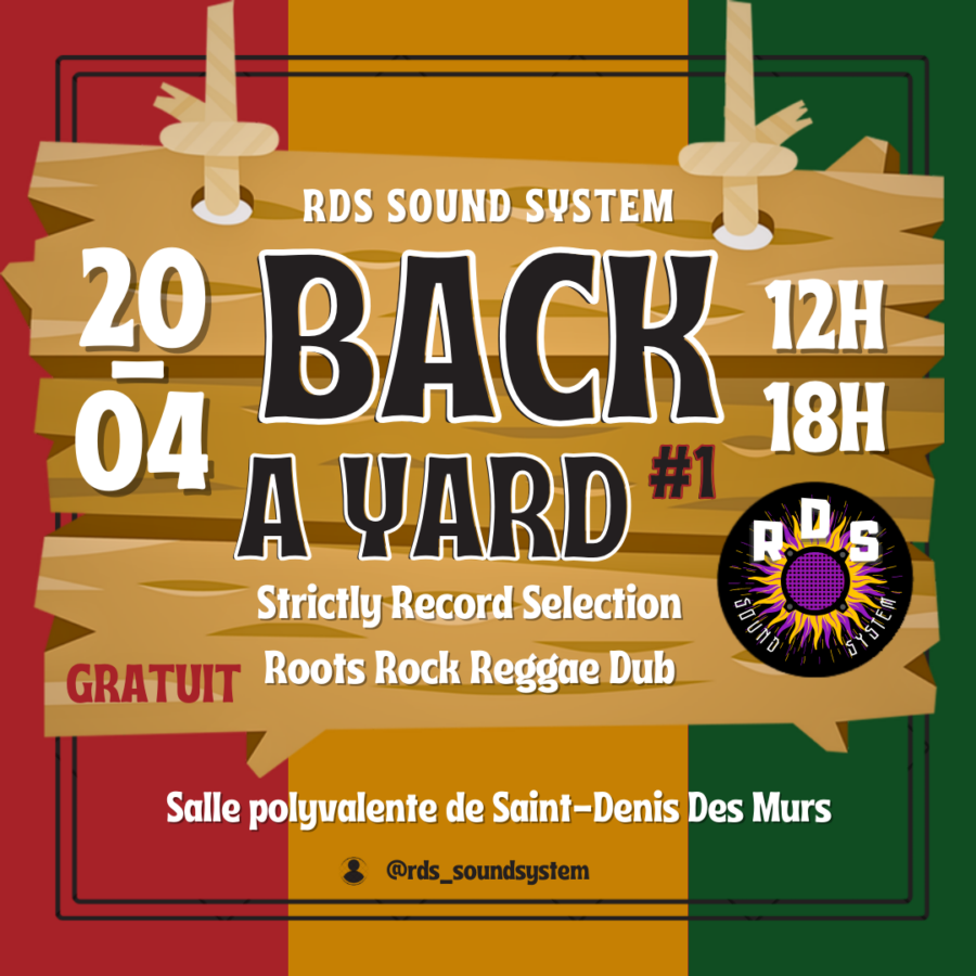 Back A Yard, c’est le rendez-vous culturel et musical du samedi à Saint-Denis-des-Murs. Vous pourrez, autour d’un repas ou d’un verre, découvrir la musique jamaïcaine des années 1950 à aujourd’hui, et la culture reggae dub