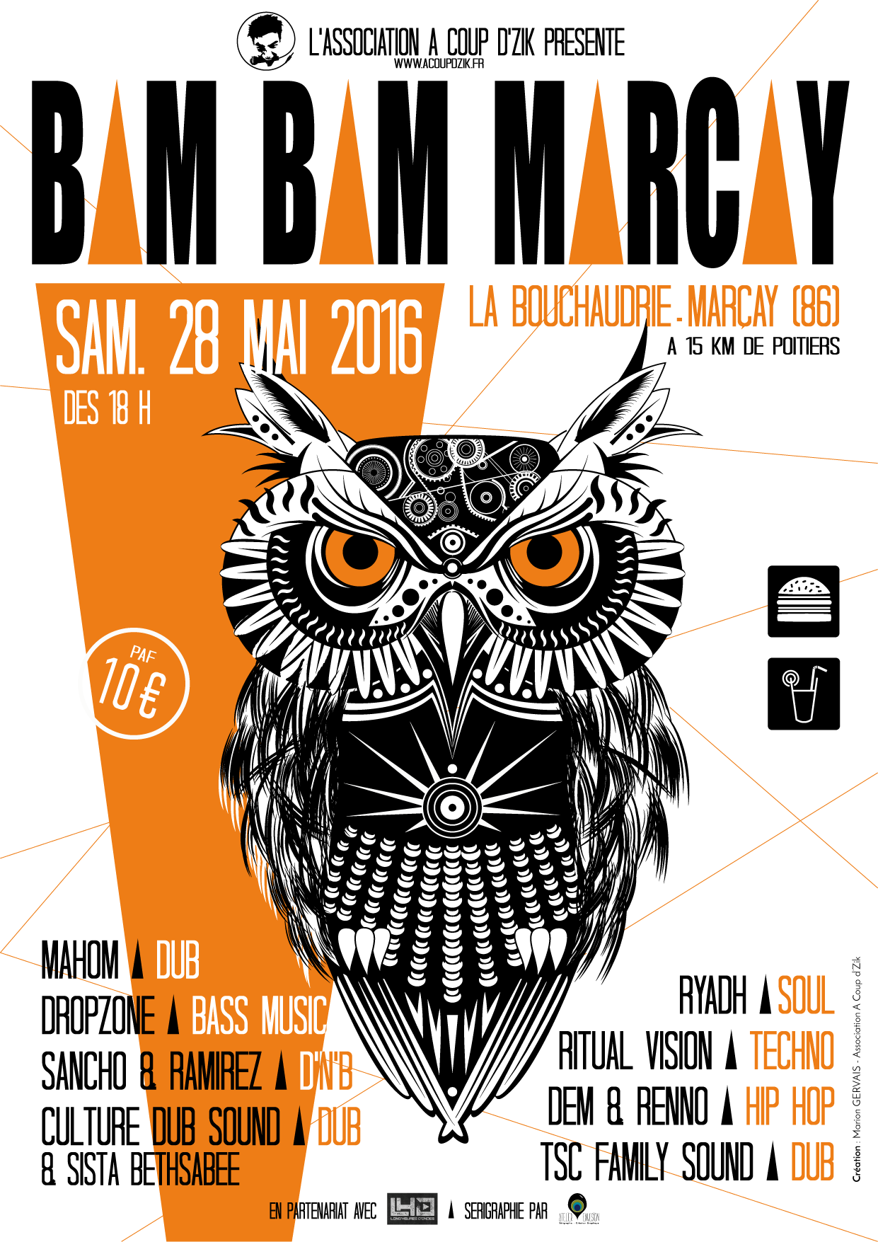 Pour la 3ème année consécutive, A Coup D’zik, en collaboration avec l’association Longues Heures d’Ondes, organise la soirée Bam Bam Marçay à la Bouchaudrie 15 km de Poitiers!!