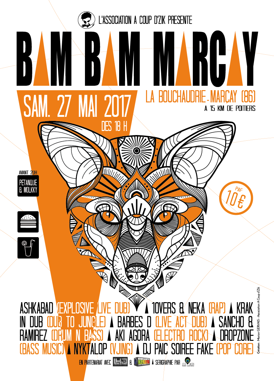 Pour la 4ème année consécutive, A Coup D’Zik en collaboration avec l’association Long’Heures d’Ondes, organise la soirée Bam Bam Marçay à la Bouchaudrie 15 km de Poitiers!!