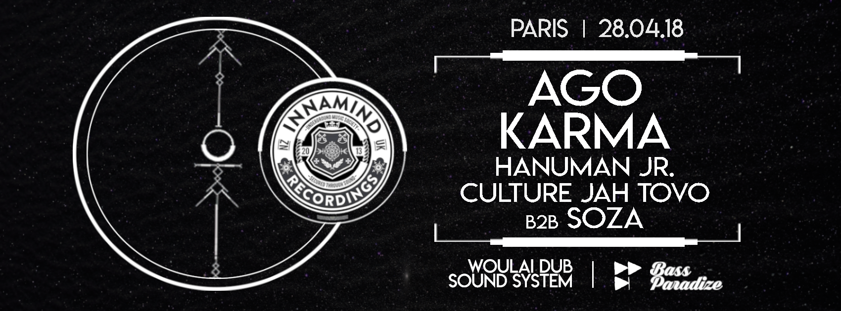 Après une première édition à La Dame de Canton survoltée, Bass Paradize est heureux de revenir pour une nouvelle session Deep Dubstep sur Sound System artisanal ! Pour cette occasion, le collectif pourra compter sur deux artistes d’un des labels les plus prolifiques de la scène : Innamind Recordings ! Deux ans après notre première collaboration qui s’était littéralement déroulée dans un autre univers, le label néozélandais pose de nouveau sa date à Paris avec le retour d’un Karma qui avait déjà mis le feu sur la sono de Woulai Dub, et qui sera cette fois accompagné par Ago, un des membres de l’éclectique NUMA CREW. Puis autour d’eux il y aura les solides DJ résidents de Bass Paradize : Hanuman Jr. et Soza B2B Culture Jah Tovo.