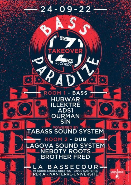 De retour à la Bassecour pour la rentrée, chose promise chose due, c’est avec le label Noizion Recordz digne représentant du dubstep made in France que nous nous retrouverons à la fin du mois de septembre. Un takeover dans la première salle qui s’annonce chaud. Hubwar, Illektre, ADS1, Ourman et Sîn seront présents sur le Tabass Soundsytem.