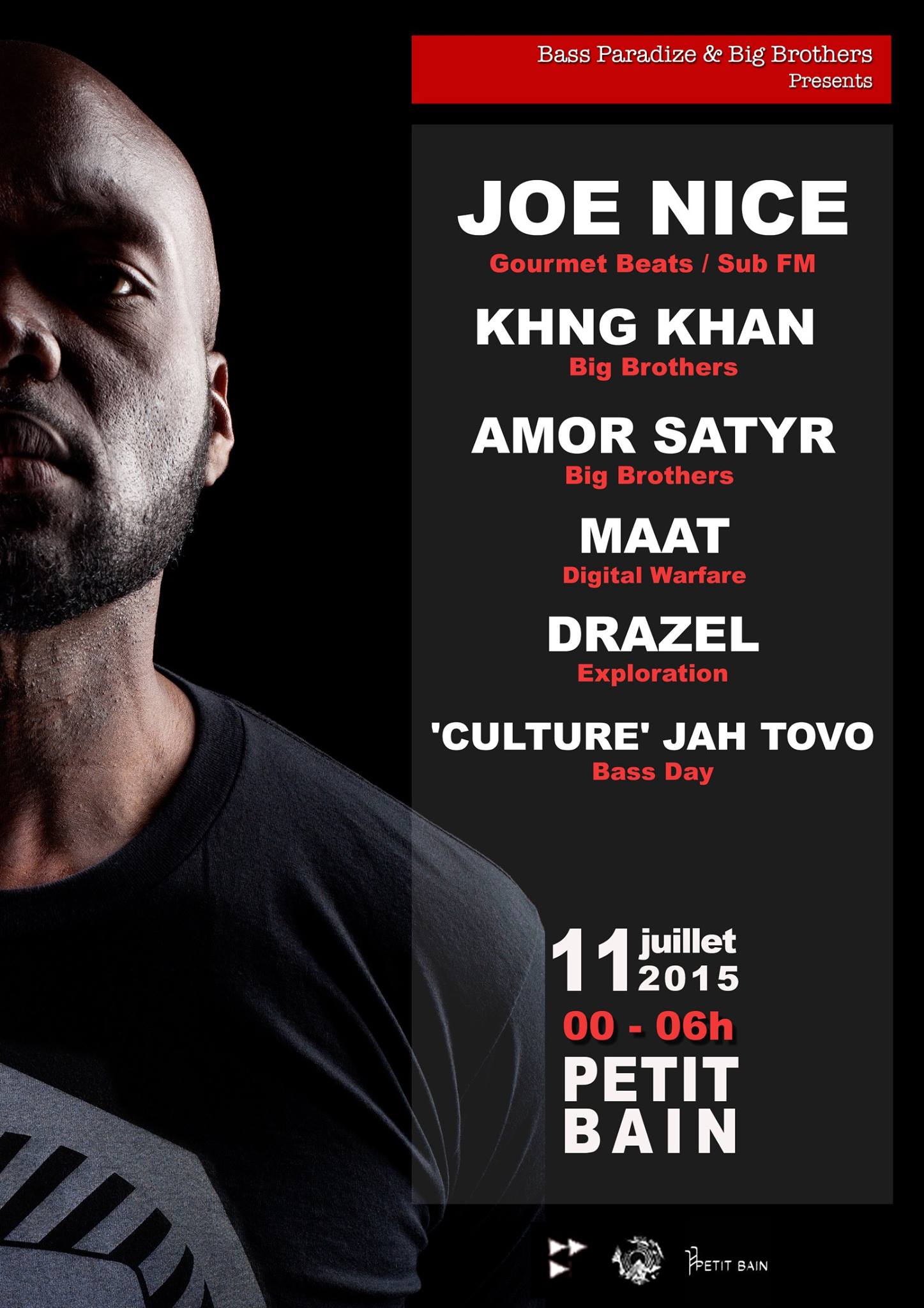 Pour cette édition estivale, BASS PARADIZE et BIG BROTHERS s’associent pour mettre à l’honneur la Bass Music au sens large et la scène locale. Seront représentés au cours de la soirée les collectifs qui donnent vie à la Bass Music depuis des années sur Paname, avec notamment EXPLORATION et DIGITAL WARFARE, mais aussi avec ‘ONE MORE TUNE’ de Pohy & Bluntsman, l’émission de radio diffusée sur RINSE France le lundi qui suit la soirée et qui aura pour invité JOE NICE !