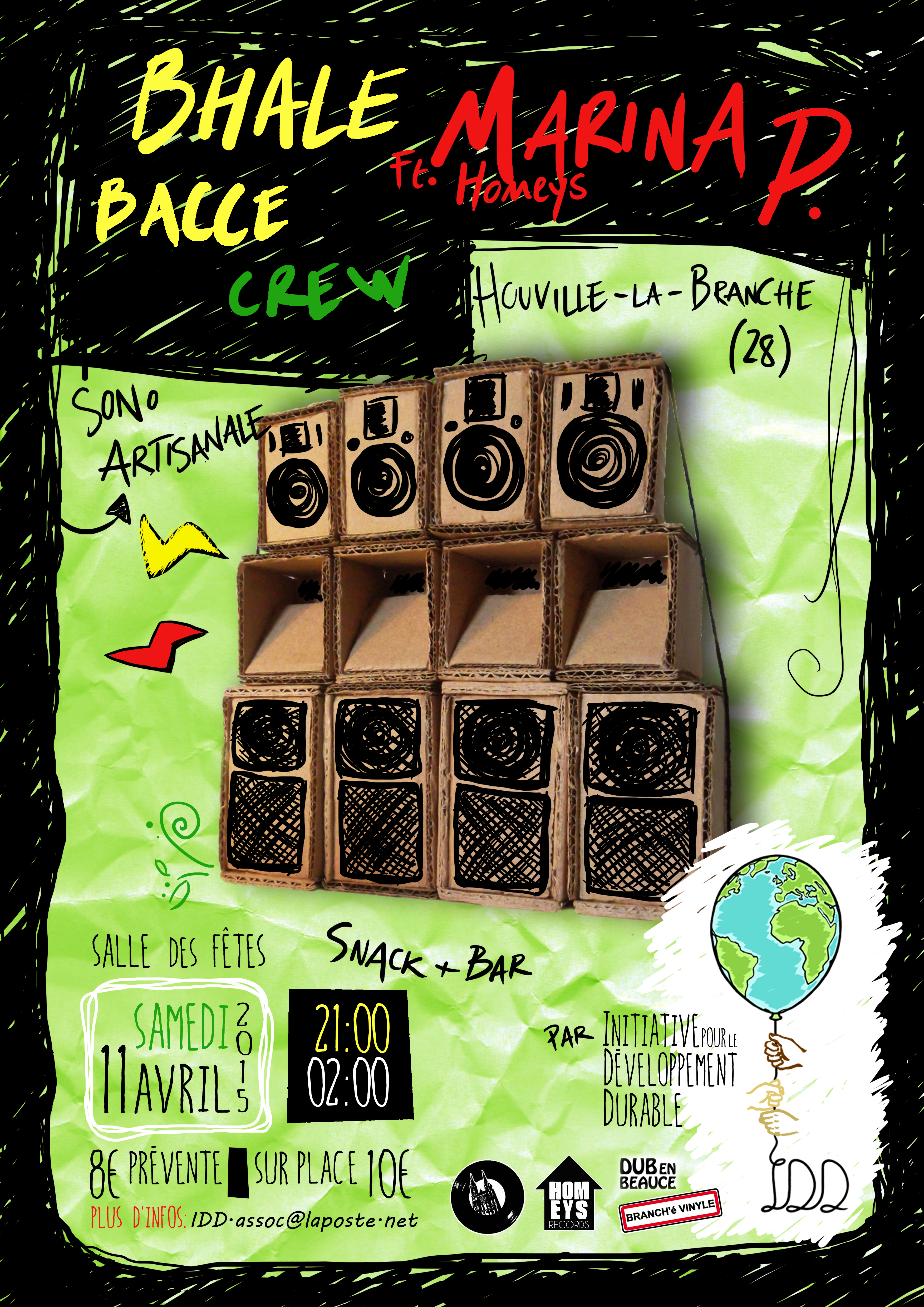 pour un Sound system avec Bhale Bacce Crew et Marina P feat Homeys à la salle des fêtes d’Houville la branche ,