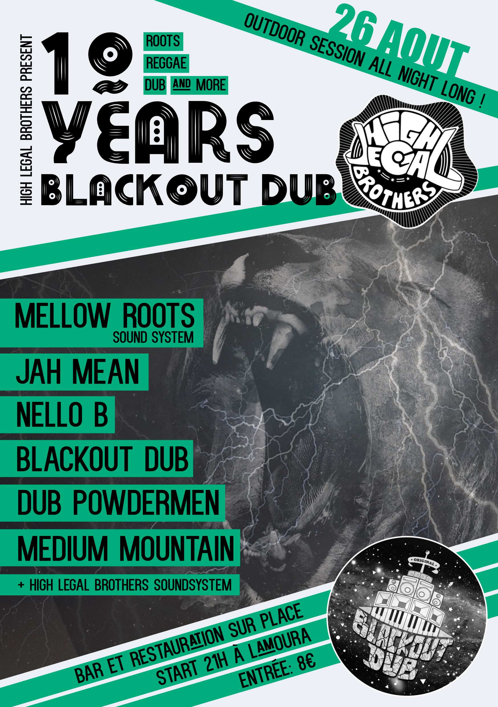 High Legal Brothers à le plaisir de fêter les dix ans de Blakout Dub le 26 août à Lamoura pour une session soundsystem outdoor .