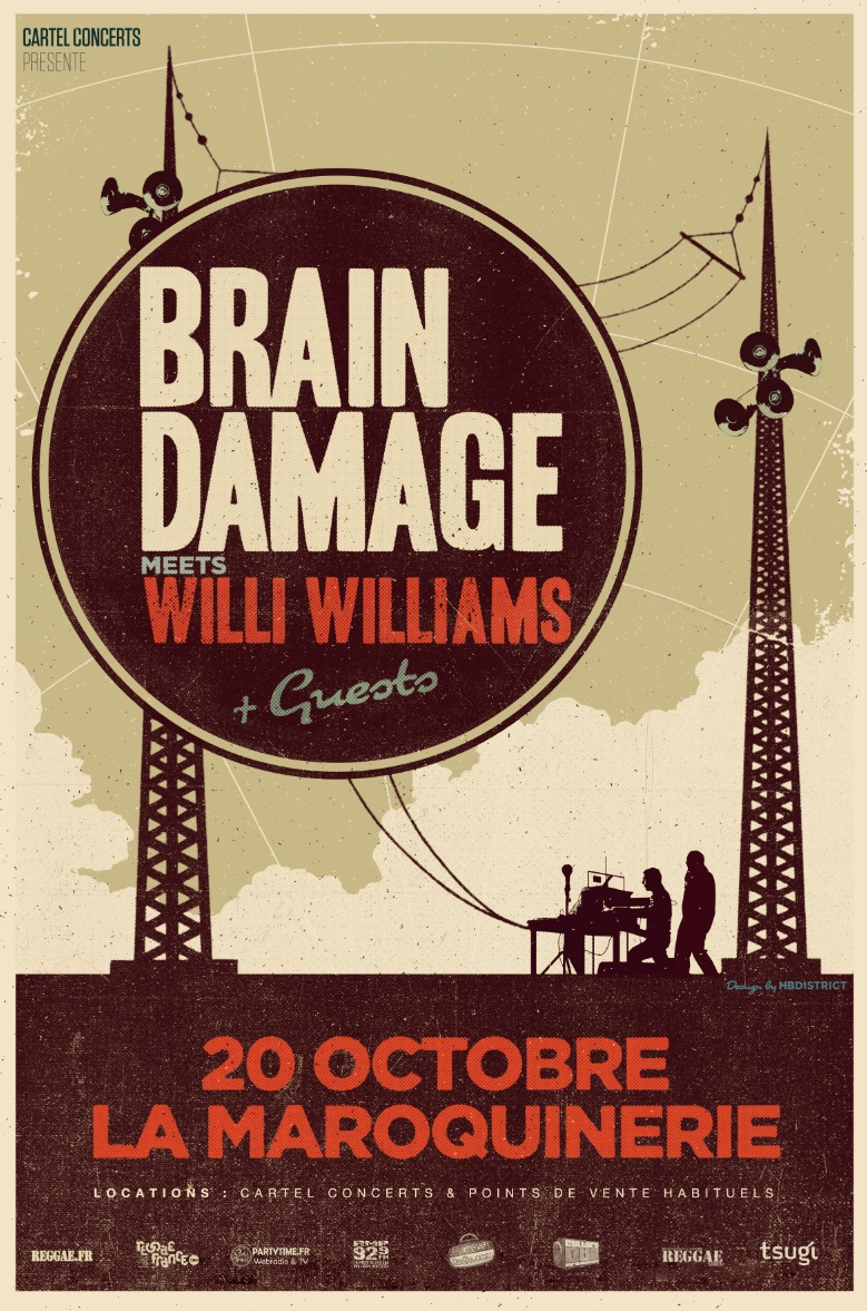 Après une merveilleuse session d’enregistrement au légendaire Harry J Studio in Kingston (Jam), les pionniers de BRAIN DAMAGE et le chanteur WILLI WILLIAMS, seront présents pour un concert exceptionnel à La Maroquinerie Mardi 20 Octobre 2015!