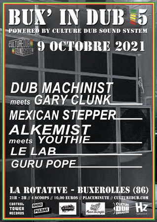 Après avoir fêté les 20 ans de Culture Dub lors de la Bux’ In Dub #4 en 2019 et après cette période délicate de confinement et d’annulation d’événement, Culture Dub, Djahkooloo et La Maison des Projets vous proposent une 5ème édition des soirées Bux’ In Dub le samedi 09 Octobre 2021 dans la salle de La Rotative à Buxerolles (86) !!…