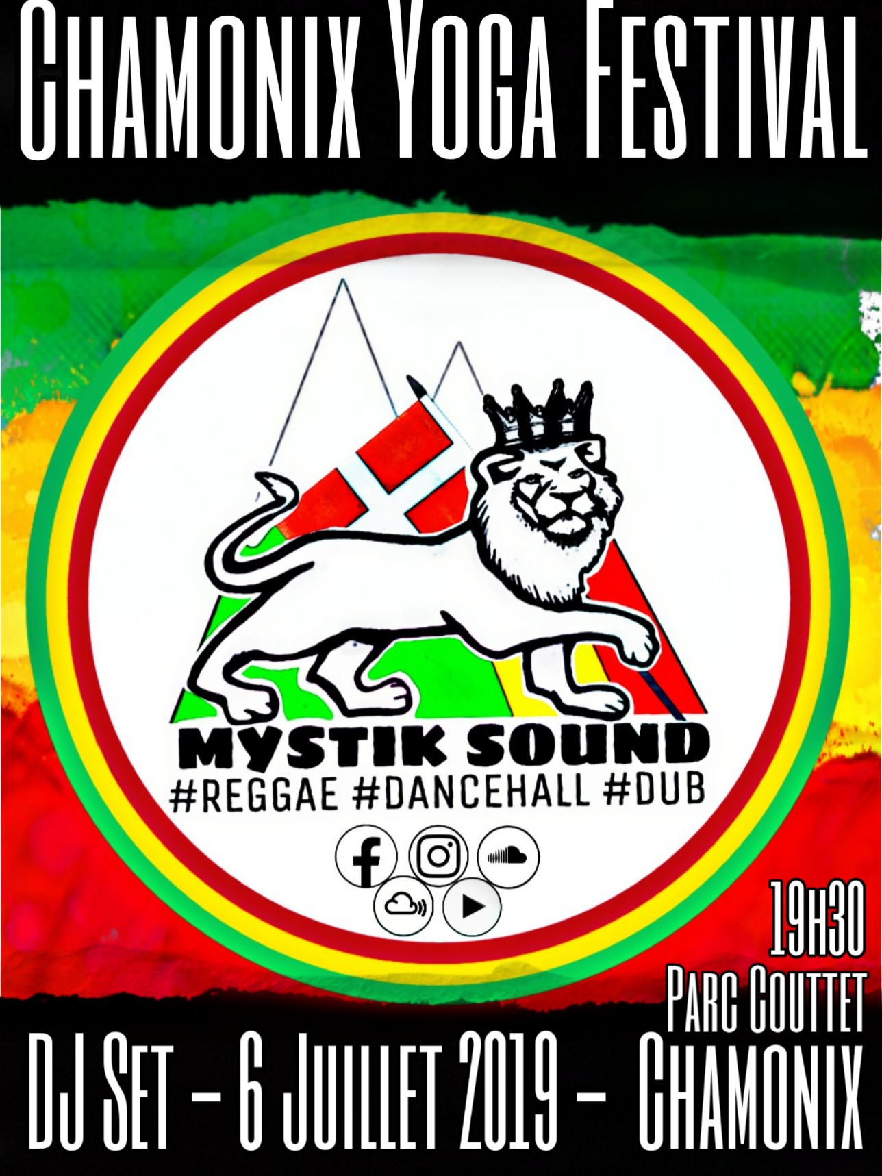 Mystik Sound vous invite le 6 Juillet 2019 dans le parc Couttet à Chamonix a l’occasion du « Chamonix Yoga Festival » des 19h30 a 22h pour un DJ Set placé sous le signe du Reggae, Dancehall, Dub et de la culture sound system jamaicaine .