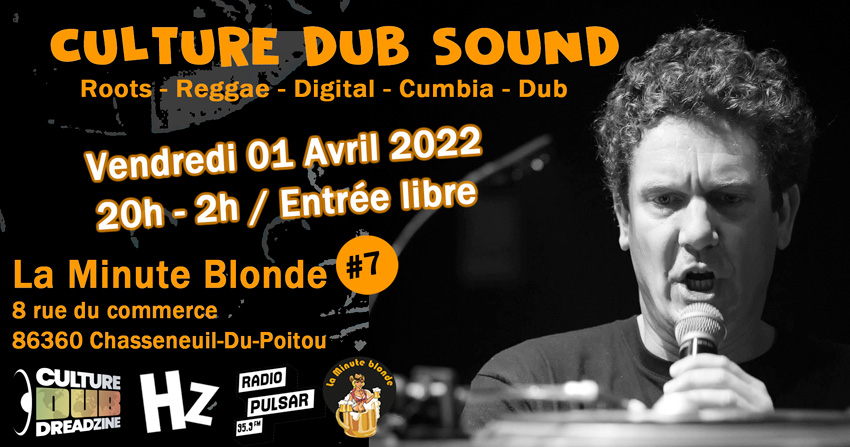 Une semaine avant la venue de Panda Dub à Poitiers, venez vous mettre en jambes avec le Culture Dub Sound à La Minute Blonde de Chasseneuil-Du-Poitou le Vendredi 01 Avril 2022 de 20h à 2h !