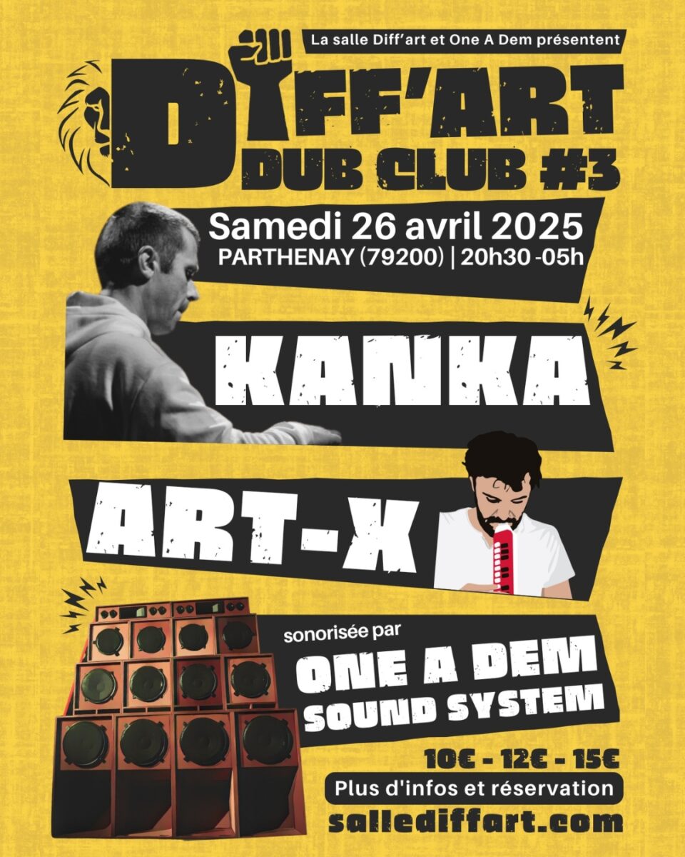 One A Dem est un sound system fondé en 2019 par trois figures du dub en Dub-Sèvres après 20 ans d’activisme. Porté par un projet global (studio, label, sono et émission de radio), il organise les Dub Side Sessions et les Diff’art Dub Club, tout en produisant des artistes via One A Dem Records. Co-organisateur du Dub Corner des Champs Sonores, il ambitionne de partager la culture Roots & Culture avec le plus grand nombre.