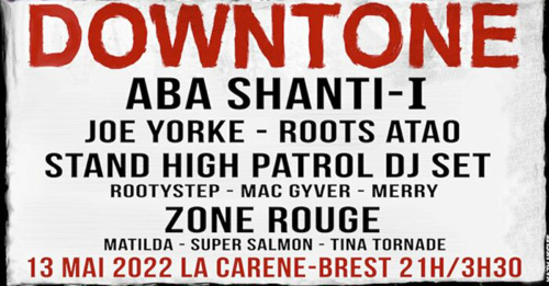 « DownTone » c’est la résidence de Stand High Patrol à la Carène. Une soirée qui invite à décloisonner les styles en proposant deux dancefloors et où se côtoient Dub, Reggae, Roots, musiques électroniques et bien plus !