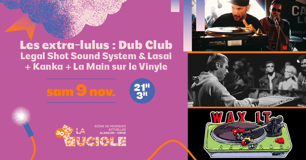 Pour la deuxième soirée sound system de l’année, c’est LEGAL SHOT qui bougera leur sono dans la fosse de La Luciole (Alençon-61). Les dubbers RENNAIS créeront les conditions de danse idéales avec leur univers Rub-A-Dub et Digital. Accompagnés du Mc espagnol 헟헔헦헔헜̈, bien connu pour enflammer les dancefloor.