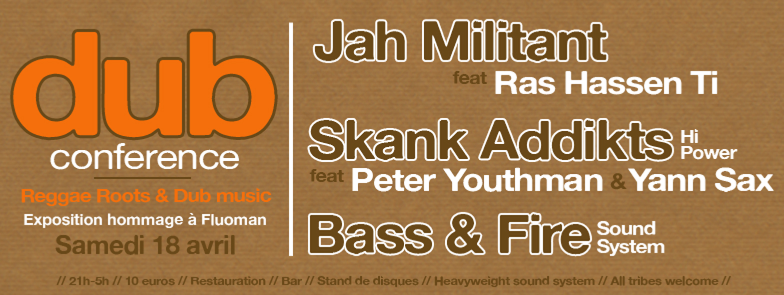 Amateur de deep Roots, de Dub endiablé et de Basses puissantes, les soirée »Dub conference » sont faites pour toi.