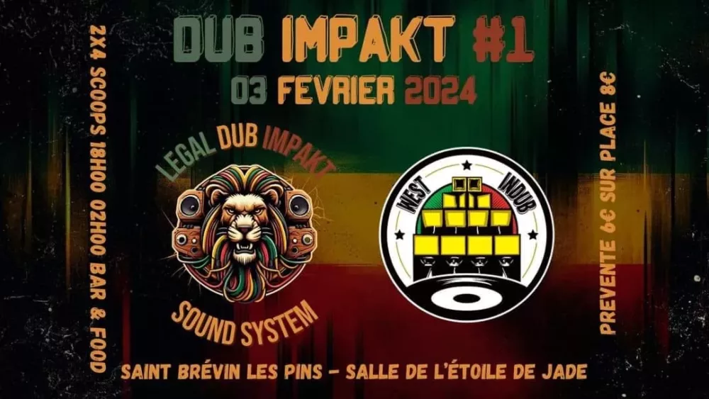 Legal Dub Impakt Sound System présente : DUB IMPAKT #1 Facebook : >> https://fb.me/e/1rOuf1Lbz << Pour la toute première fois, Legal Dub Impakt investit l’étoile de Jade avec une soirée inoubliable de Reggae Sound System. Après la magnifique danse à la fête de la musique, retrouvez nous avec nos amis du West InDub Sound System pour une expérience encore plus grandiose ! Préparez-vous pour : Des basses puissantes avec 4 basses par Sound System. Des sonos artisanales pour une immersion sonore.