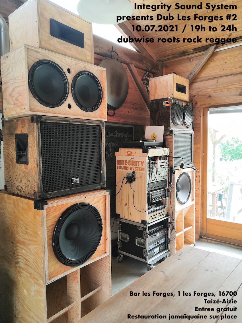 Integrity Sound System s’est installé en France en 2015. Sa fondation remonte à Londres au début des années 90 où son créateur (Chris) a commencé à collectionner des raretés de reggae et de dub, à construire des sound systems, à vivre, à apprendre et à collaborer avec des artistes comme Darren Jam Tone et Ian Etherealites. Ces nouvelles soirées régulières de dub et de reggae à l’incroyable Bar les Forges sont destinées aux amateurs de reggae et de dub des années 1960 à nos jours. Strictement en vinyle, vous pouvez vous attendre à des promotions, des platines dub et des nouveautés exclusives à chaque fois… Chaque événement verra Chris faire équipe avec des sélectionneurs, des groupes et des artistes invités de France, du Royaume-Uni et d’ailleurs….. Le tout accompagné d’une excellente cuisine jamaïcaine.