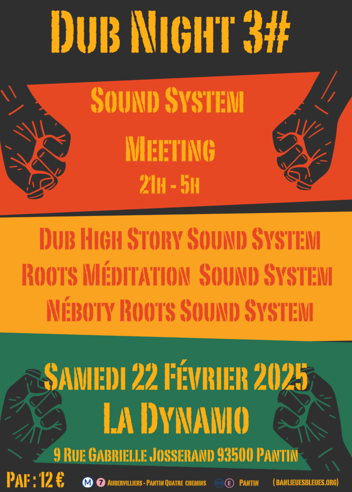 Bienvenue à la Dynamo pour la Dub Night #3 le samedi 22 février 2025 de 21h à 5h !!! Sound System meeting avec à l’honneur :