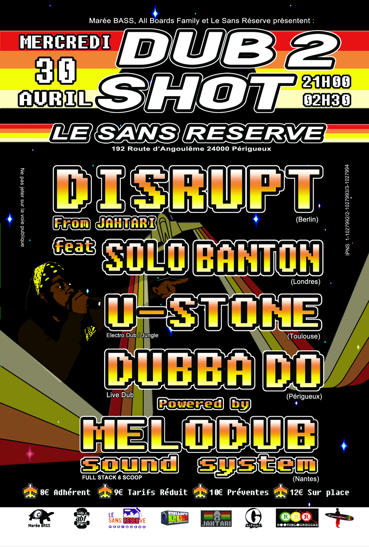 Après une DUB SHOT #1 efficace avec les Dub Invaders sur le DUB ADDICT Sound System, Marée BASS, All Boards Family et le Sans Réserve remettent le couvert avec une DUB SHOT #2 plutôt intergalactique !!