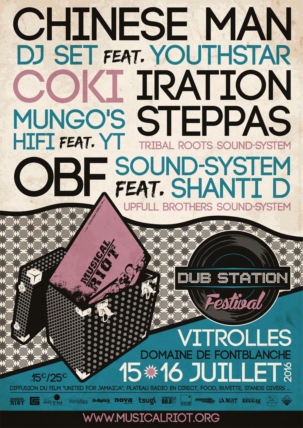 Cette 2ème édition du Dub Station Festival à Vitrolles s’annonce déjà inoubliable. Certes l’esprit reste le même : Sound systems, basses, dub avec des artistes de la scène locale et des têtes d’affiches internationales comme Iration Steppas et Mungo’s Hifi. Mais cette année la programmation évolue vers d’autres styles comme le Dance Hall, le Dubstep, ou encore le Hip-Hop. Pour la première fois, Chinese Man et Coki s’invitent à une Dub Station, avec la ferme intention de faire rugir les enceintes puissantes d’OBF.