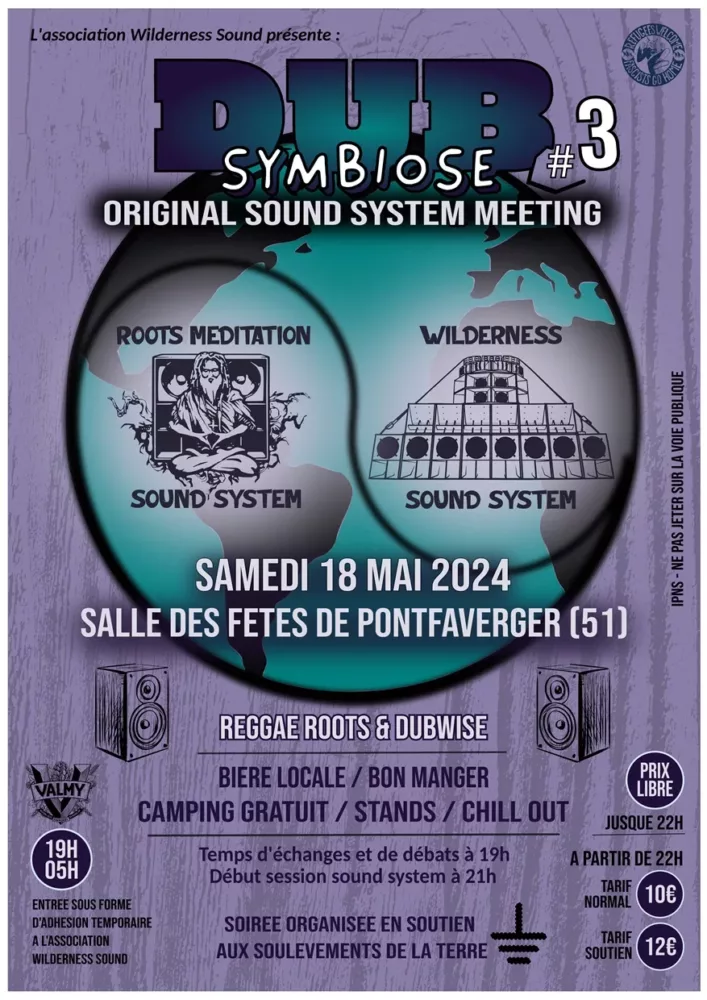 L’association Wilderness Sound a le plaisir de vous inviter à la 3ème édition des soirées « DUB SYMBIOSE », le samedi 18 mai à Pontfaverger-Moronvilliers (Marne).