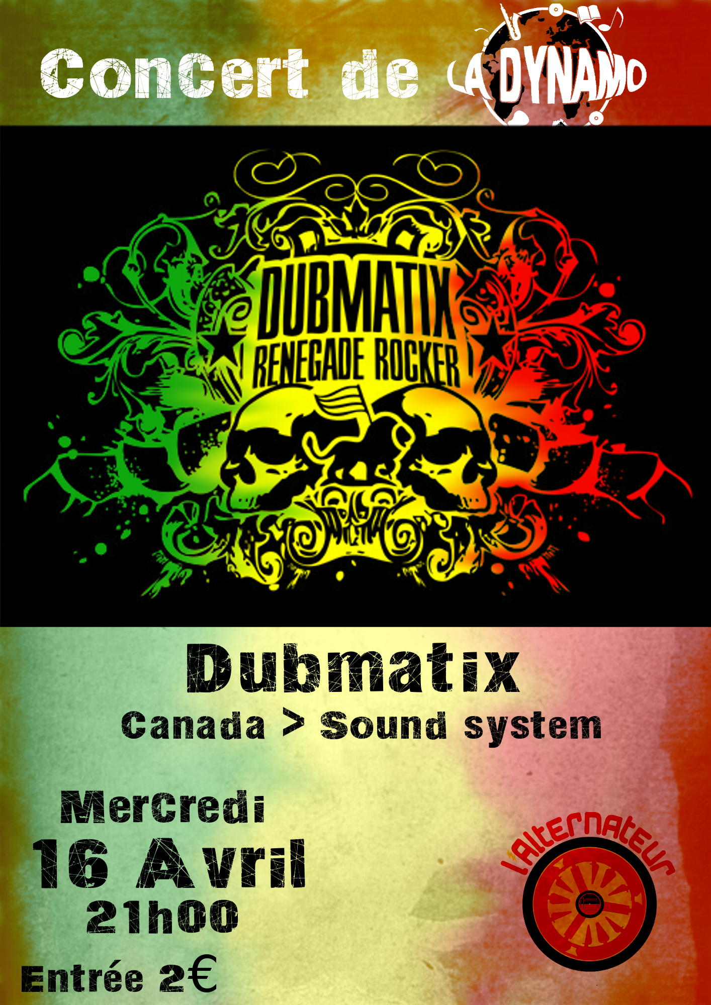 Concert de DUBMATIX organisé par l’asso la Dynamo à L’alternateur Bar convivial et alternatif à Niort.