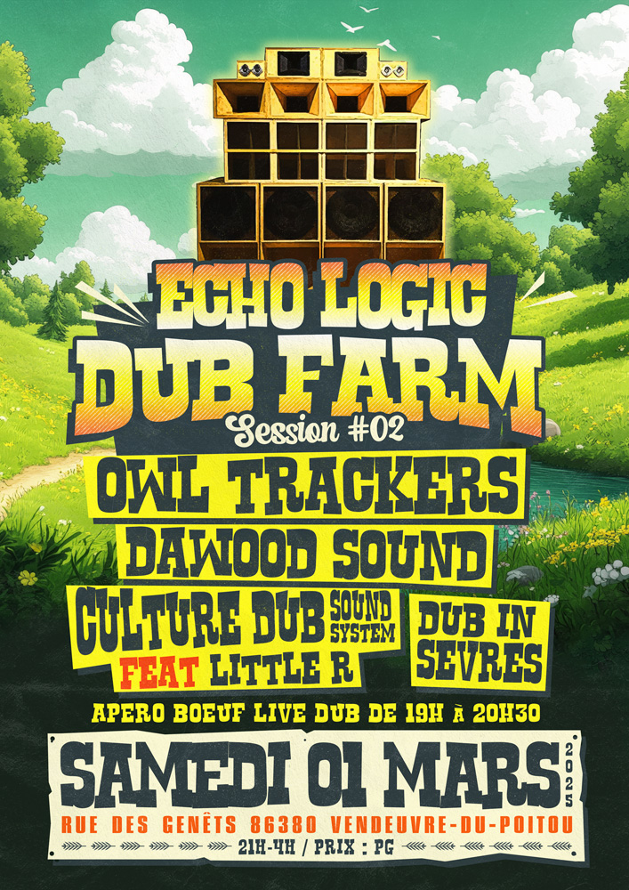 Seconde session Echo Logic Dub Farm le 1er Mars 2025 organisée la Ferme gérée par des passionnés de culture en plein terre, d’écologie et de culture Dub…