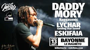 Daddy Mory débarque à Bayonne pour un show exceptionnel aux côtés du sound system Eskifaia ! Il sera accompagné de Selecta Lychar du Guiding Star Sound, pour un show brut, puissant et engagé, entre reggae roots, dub et dancehall.