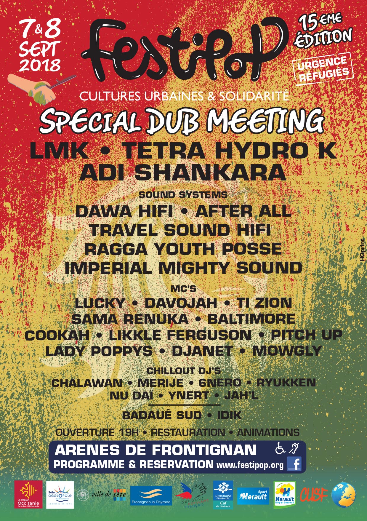 Le Festipop, Festival des Cultures Urbaines Solidaires est de retour pour sa 15ème édition les 07 et 08 septembre 2018 aux arènes de Frontignan (34), avec une spéciale DUB MEETING !