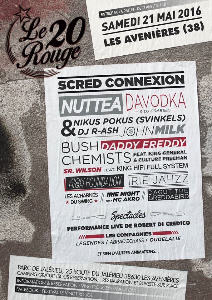 Le 23 mai 2015, la première édition du festival « Le Vingt Rouge » voyait le jour : plus de deux cents bénévoles et artistes pour 2400 festivaliers.