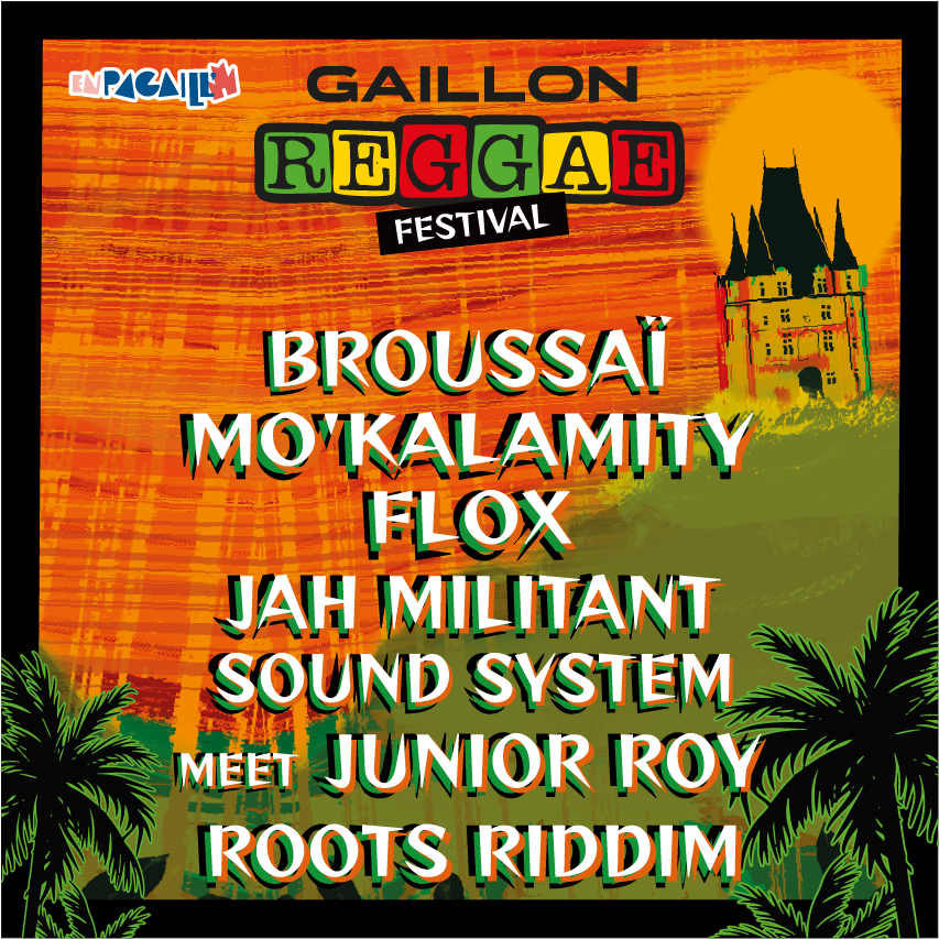 À l’occasion de son 3ème festival, l’équipe En Pagaill’ revêt les couleurs vert-jaune-rouge pour vous présenter une Line-up reggae du tonnerre.