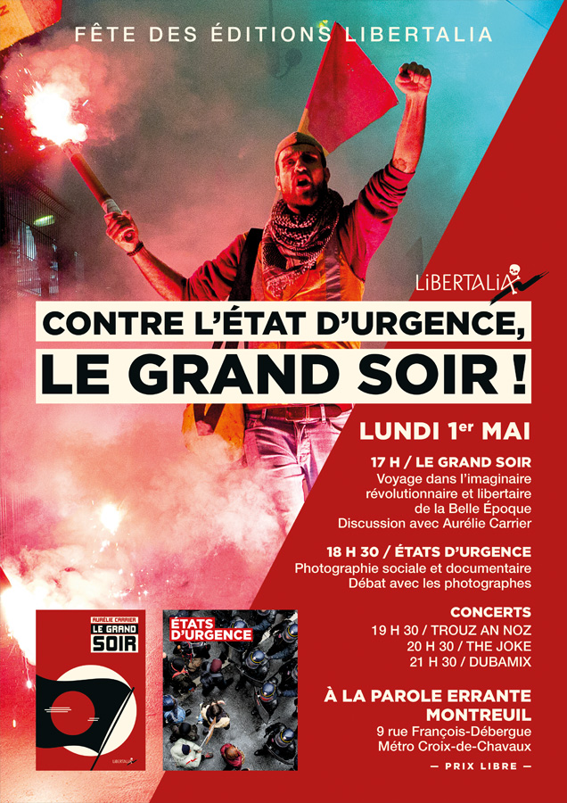 Lundi 1er Mai, à la Parole errante, 9 rue François-Débergue, 93100 Montreuil (métro Croix-de-Chavaux). Prix libre.