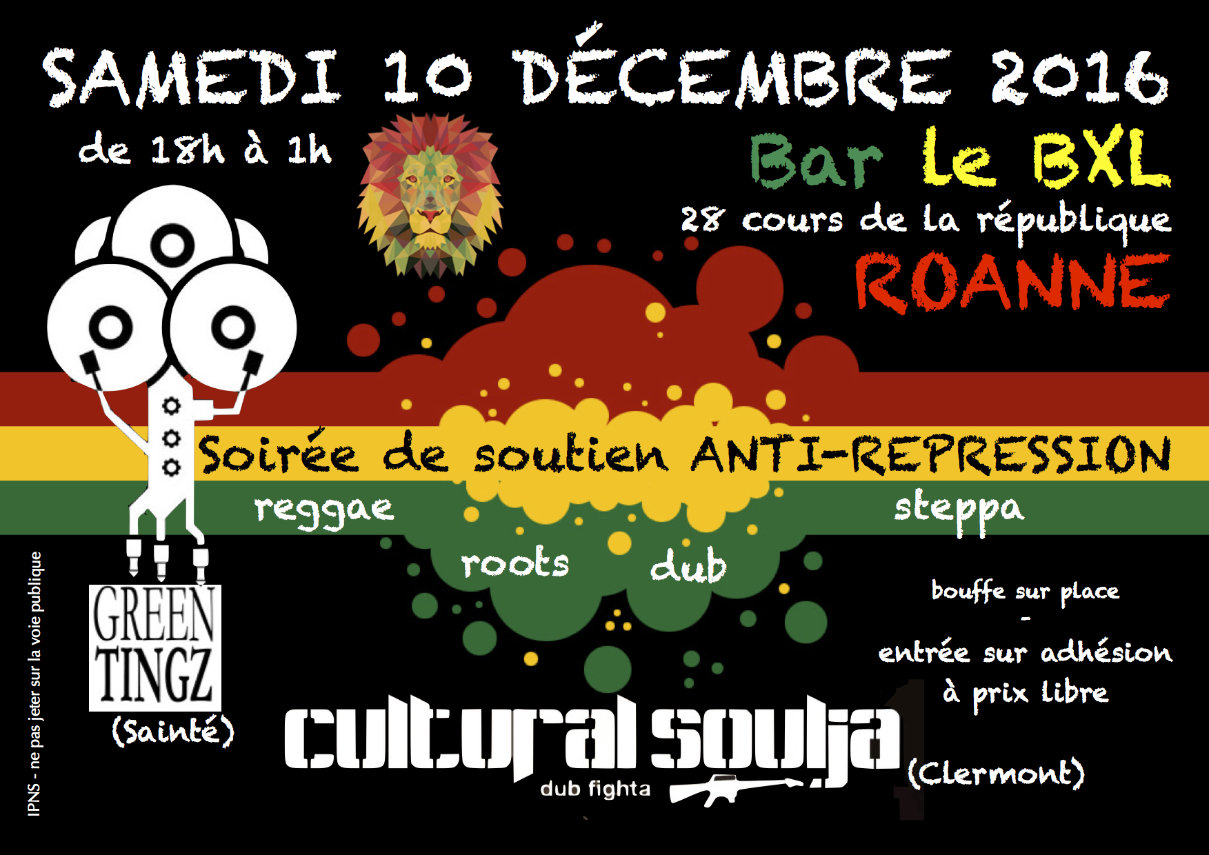 Soirée de soutien ANTI-RÉPRESSION au BXL Roanne (42) le samedi 10 décembre 2016.