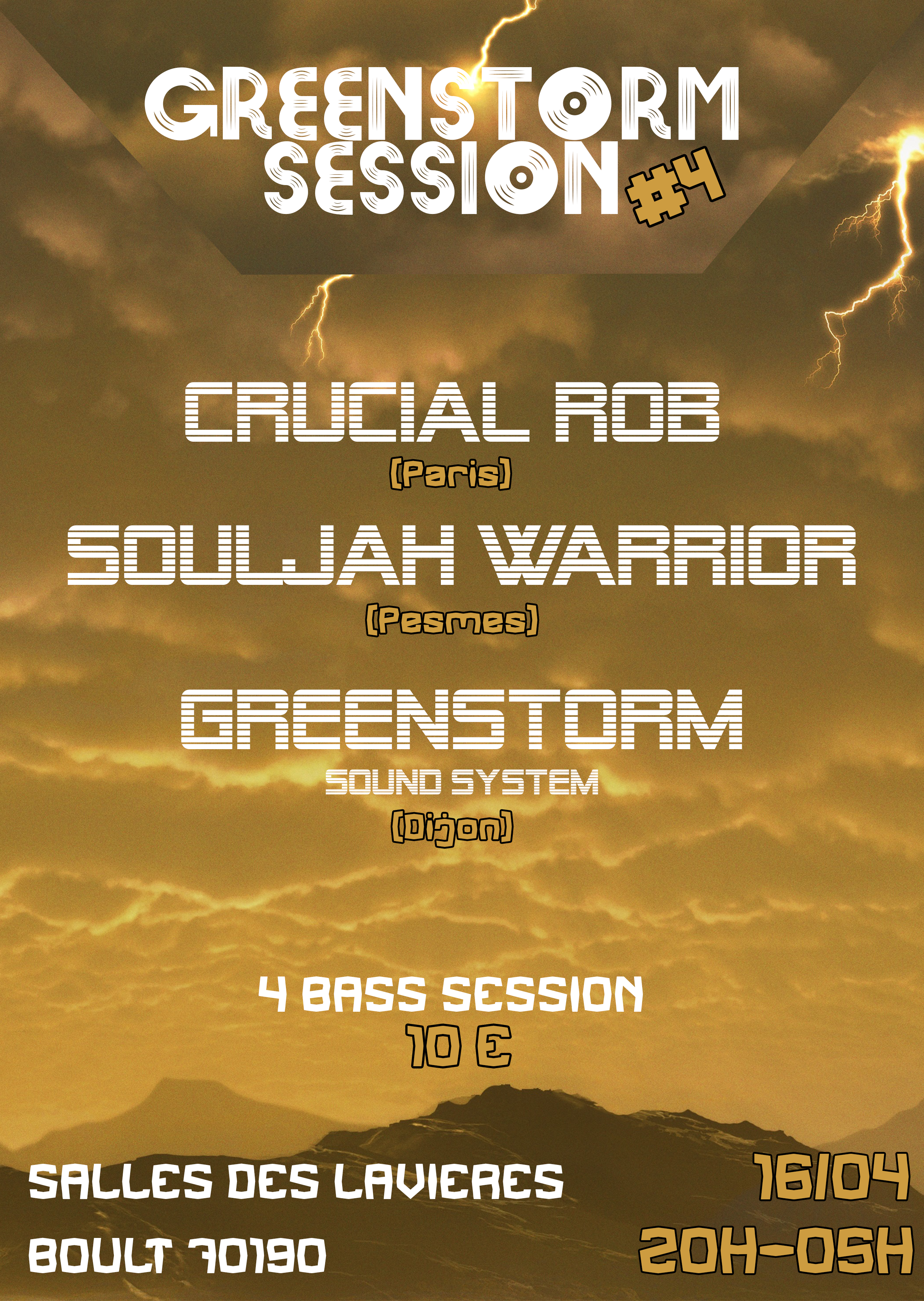 Pour cette 4ème edition des Greenstorm Session, c’est Crucial Rob qui viendra nous proposer des productions home made très puissante et bien évidemment, Souljah Warrior comme d’habitude!