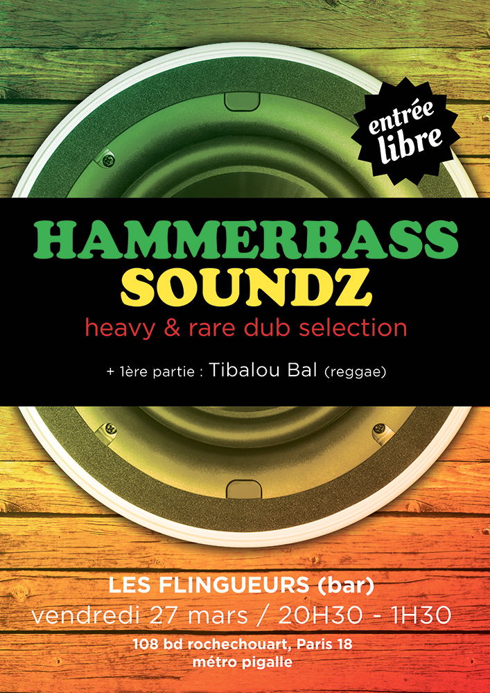 Nouvelle session dub reggae avec le HAMMERBASS SOUNDZ qui viendra vous sélecter ses nombreuses pépites dub accumulées au cours de ses nombreuses années d’activisme à travers l’Europe!!!! Rendez-vous au sous sol de ce bar chaleureux ou la musique pourra résonner jusqu’à 01h30 !!!!! good vibes et positive message au programme !!! en première partie Tibalou bal sound axé sur le reggae… entrée libre, à partir de 20h30 !!!!