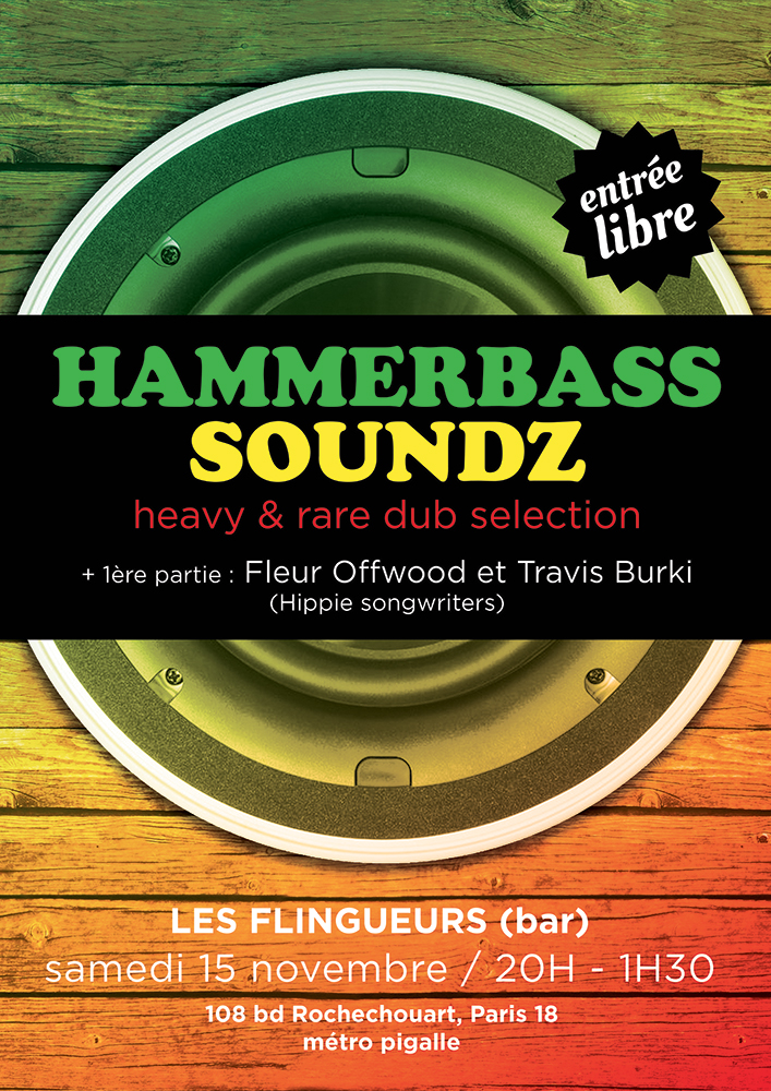 Nouvelle session avec le label de dub HAMMERBASS RECORDS qui viendra vous faire partager ses pépites reggae dub accumulées au cours de ses nombreuses années d’activisme !!! Jeanpoldub et Daw les selectors du HAMMERBASS SOUNDZ se feront un plaisir de vous embarquer dans un dub voyage intense et rafraichissant, au sous-sol de ce bar chaleureux ! Du bon son en perspective !!!