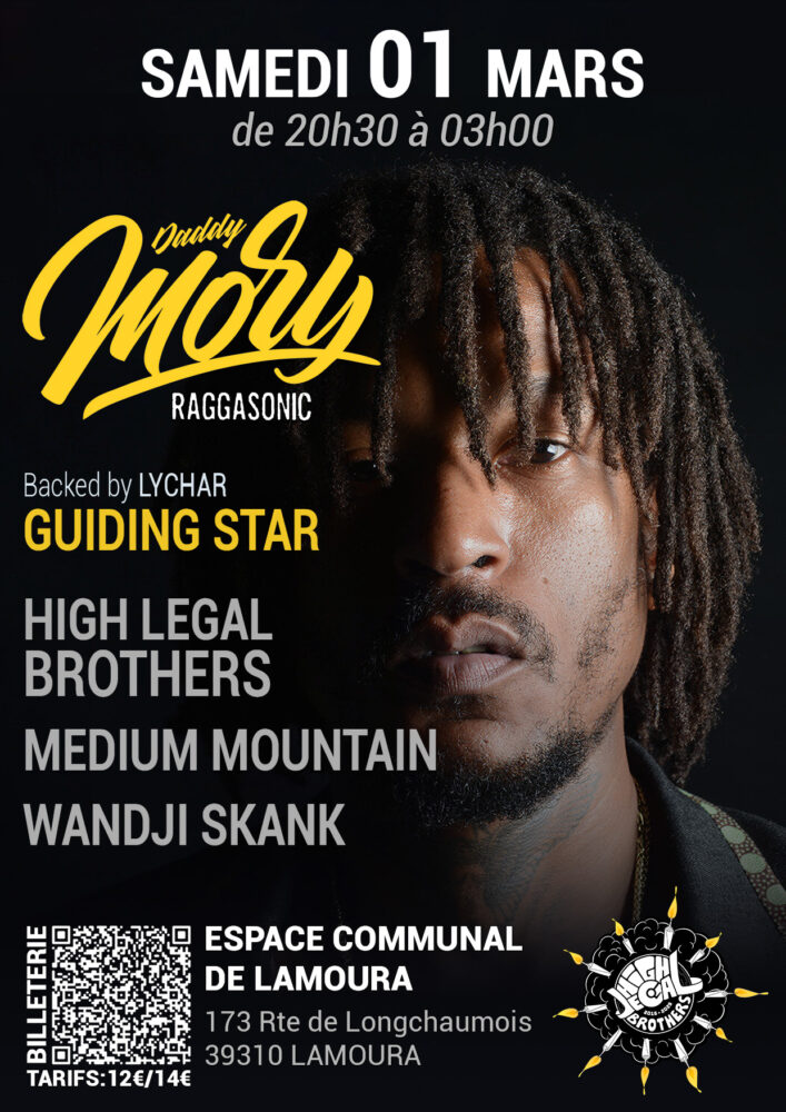 L’association High Legal Brothers célèbre 10 ans d’activité cette année, pour fêter ça, vous retrouverez Daddy Mory, acteur incontournable de la scène reggae Française, membre du légendaire groupe Raggasconic, triple disque d’Or, à Lamoura, pour une soirée qui promet d’être mémorable .