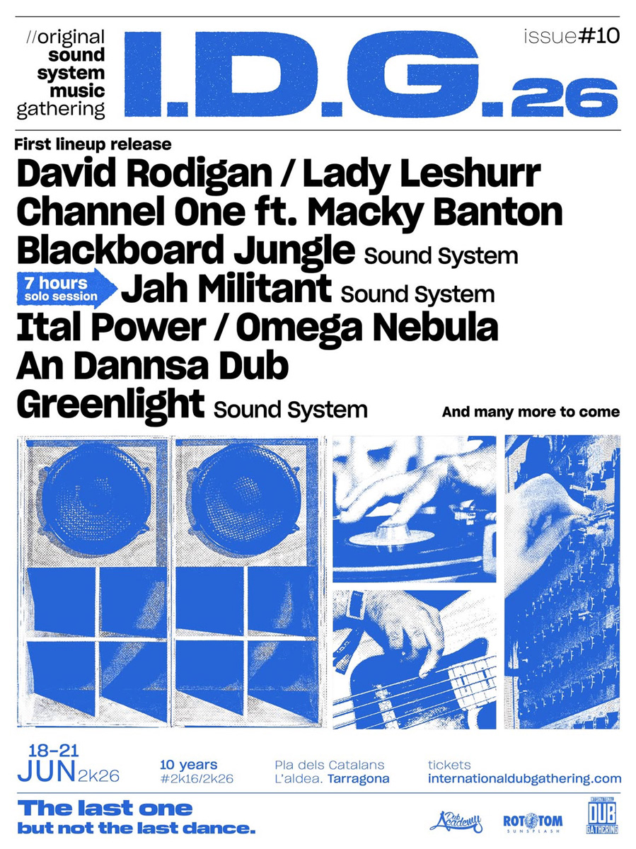 Pour la première fois à l’International Dub Gathering, le festival accueillera le maître incontesté du reggae, David Rodigan, qui n’a plus besoin d’être présenté. Lady Leshurr, dont la performance live vous laissera sans voix. Et si vous êtes amateur de dub pur et dur, vous pourrez passer 7 heures en compagnie de Jah Militant et ne manquez surtout pas Channel One avec Macky, Blackboard ou Greenlight. Des sessions exceptionnelles d’Ital Power, Omega Nebula et An Dannsa Dub sont également au programme, et ce n’est que le début.