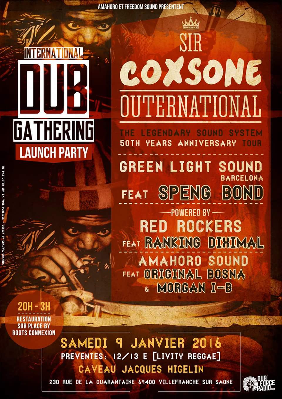 ÉVÉNEMENT, le sound légendaire number one est de retour après 25 ans d absence : SIR COXSONE OUTERNATIONAL sera à villefranche sur Saône au caveau Jacques higelin. Avec en première partie GREENLIGHT venu tout droit de Barcelone et du vétéran SPENG BOND ! Le tout sonorisé par la sono à lampes des RED ROCKERS 8 kw.