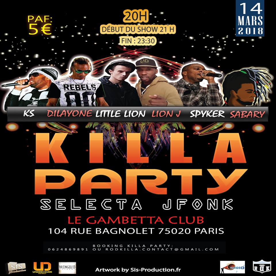 Ca se passe au Gambetta Club (104 rue Bagnolet 75020 Paris), le 14 mars 2018 à 20h00 Le PAF est à 5 euros. KILLA PARTY!!!